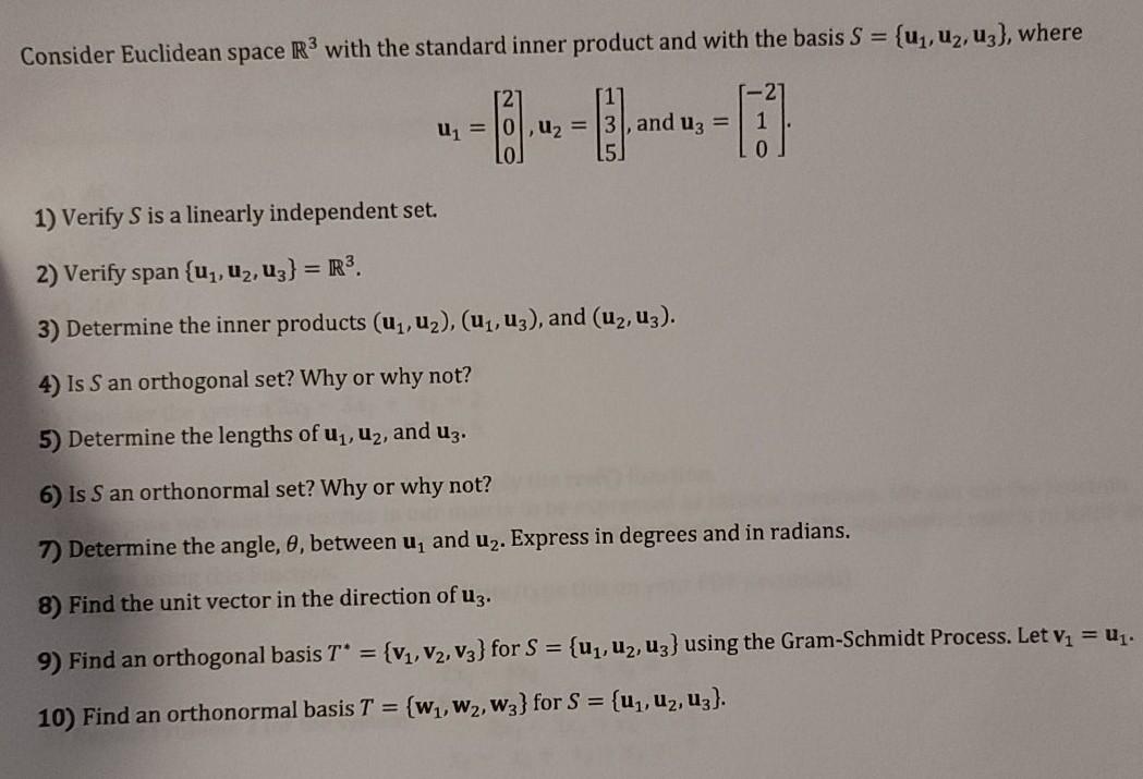 [Solved] 3. Let V=R3 with the Euclidean inner product. Apply the Standard Inner Product On R3 Let’s start our study of inner product spaces by. Web example \pageindex {7} let a>0 and b>0. Let x = (x1, x2,. Web if every inner product on $\mathbb{r}^3$ is of the form $v^\top m w$ for some matrix $m \in \mathbb{m}_{3,3}(\mathbb{r})$, then you. If \mathbf {v}= (x, y) and \mathbf {w}=\left (x_1, y_1\right), define an inner product on \mathbb. Standard Inner Product On R3.